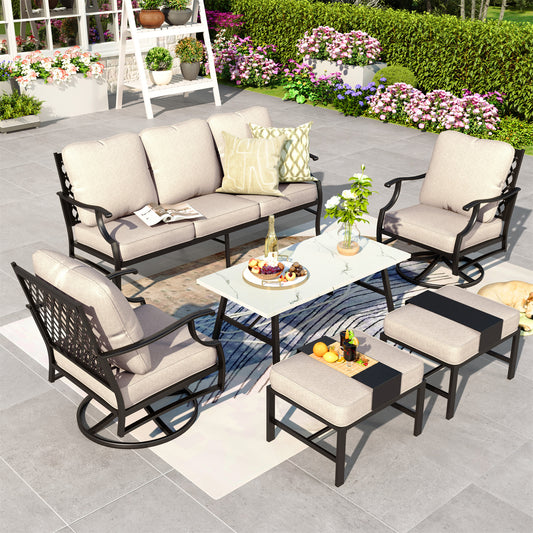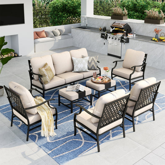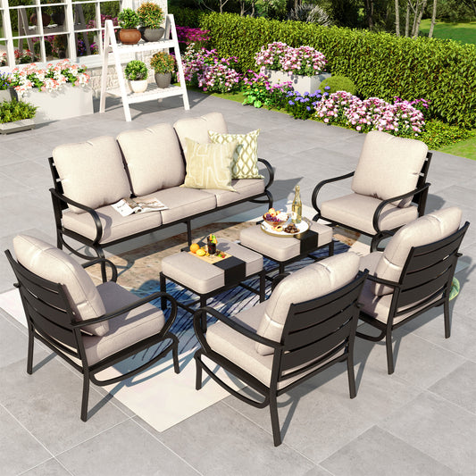 Summit Living 7 Pcs Outdoor Conversation Set, Patio Metal Furniture Sofa Set for 9 Person with Beige Cushion