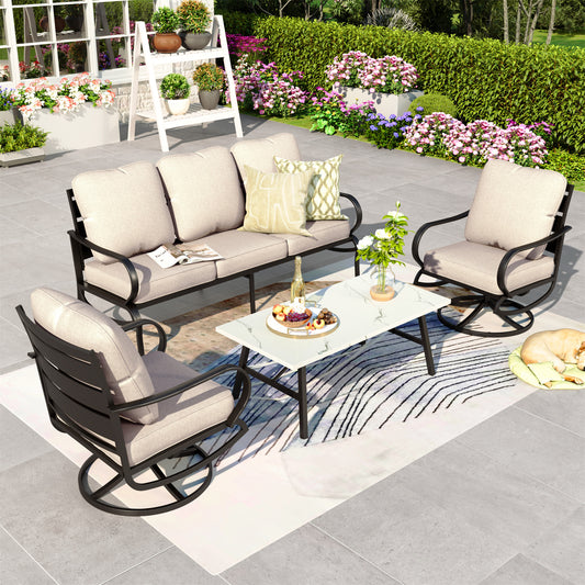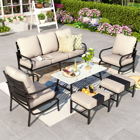 Summit Living 5 Piece Patio Conversation Set for 7 Person, Steel Sofa Outdoor Furniture Set, Beige Cushion