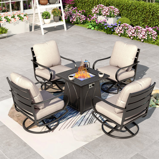 Summit Living 5 PCS Outdoor Furniture with 28 Fire Pit Table Patio Conversation Set for 4 People, Beige Cushion