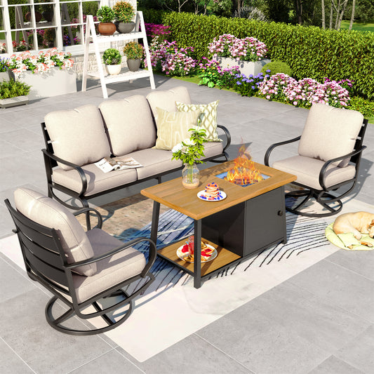 Summit Living 4 Pieces Patio Conversation Set with 45" Fire Pit Table Outdoor furniture Sectional Sofa for 5 Person, Beige Cushions