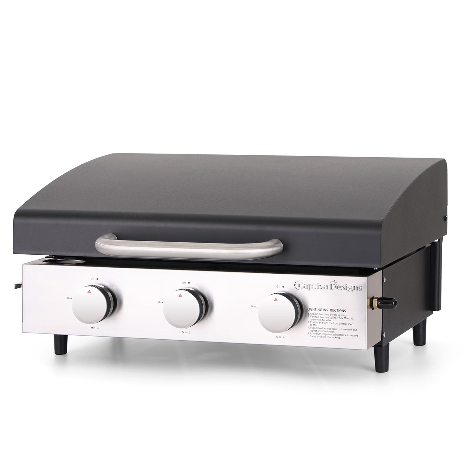 MF Studio 22 Inch Tabletop Griddle Portable Propane Gas Griddle with 3 Burners Black