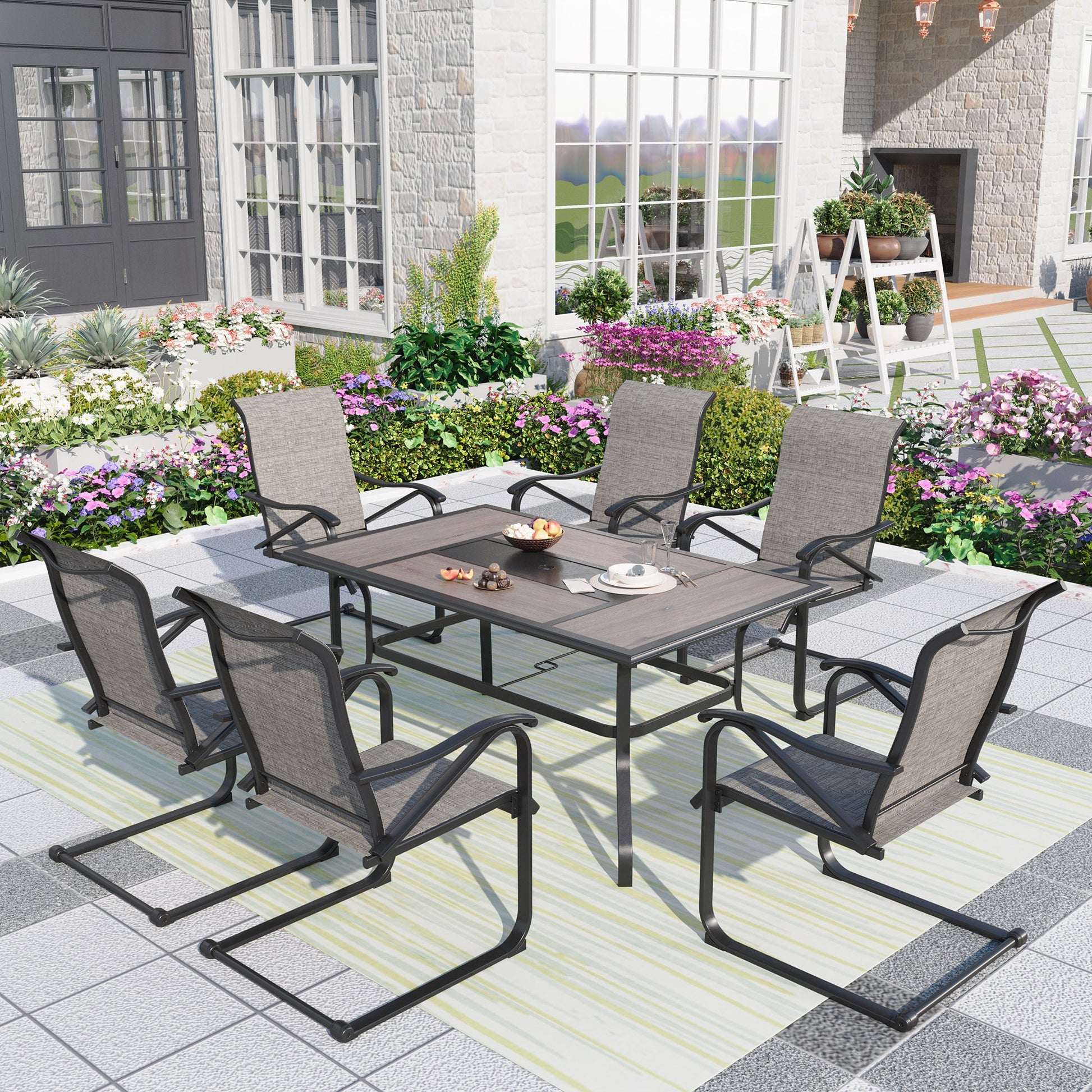 MF Studio 7 Pieces Outdoor Patio Dining Set with 6 Pieces C-Spring Textilene Chairs and Metal Frame Dining Table & PVC Table Top, Gray