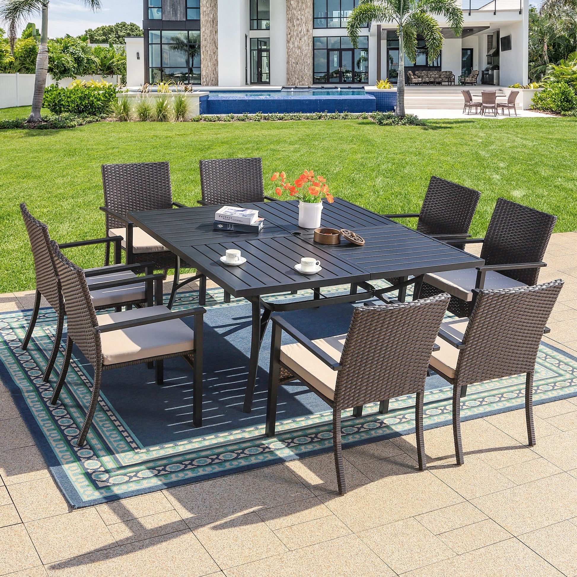 MF Studio 9-Piece Outdoor Dining Set with Large Square Table&Wicker Chairs for 8-Person, Black