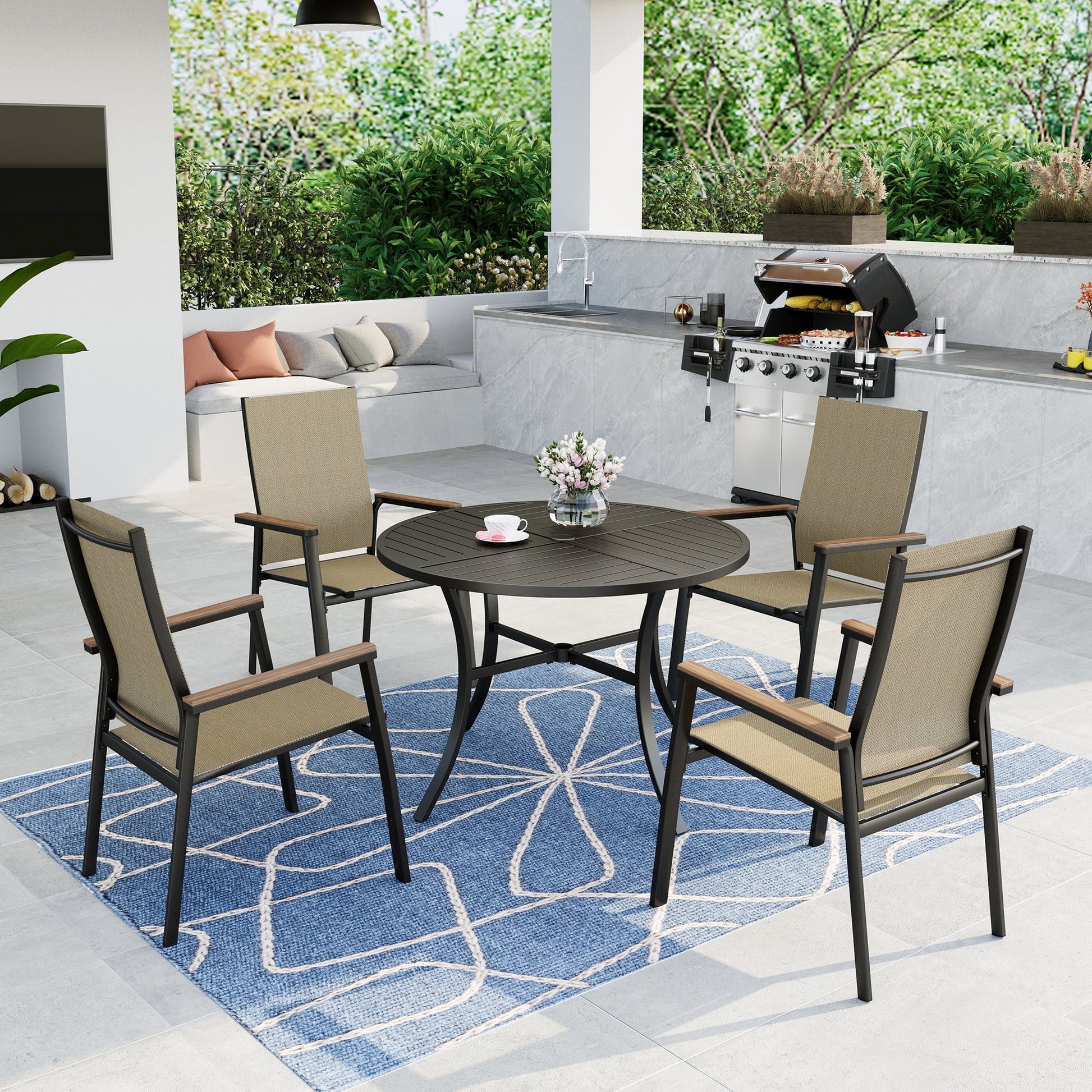 Summit Living 5-person Outdoor Patio Dining Set with 4 Pieces Blue Aluminum Armchairs & 1 Piece Metal Steel Round Table, Black & Beige