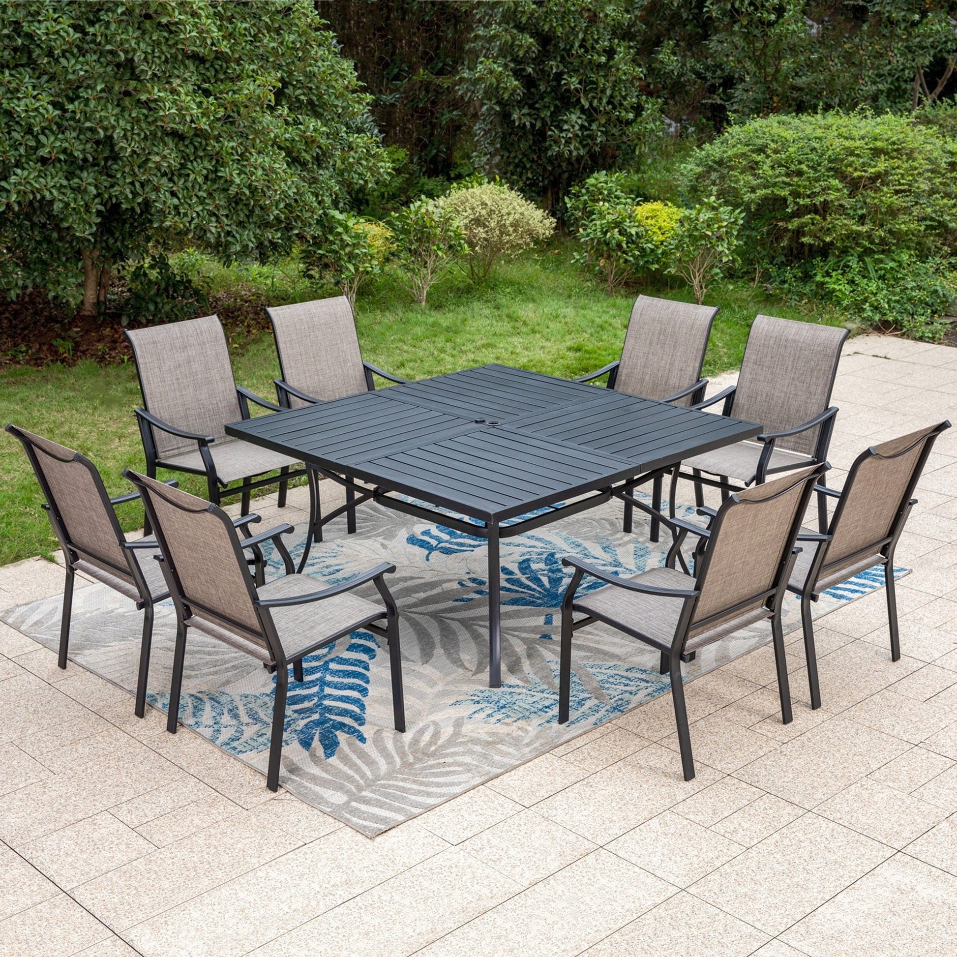Summit Living 9-Piece 350 lbs Capacity Outdoor Dining Set with Large Square Table & Textilene Chairs for 8-Person, Black & Gray Brown