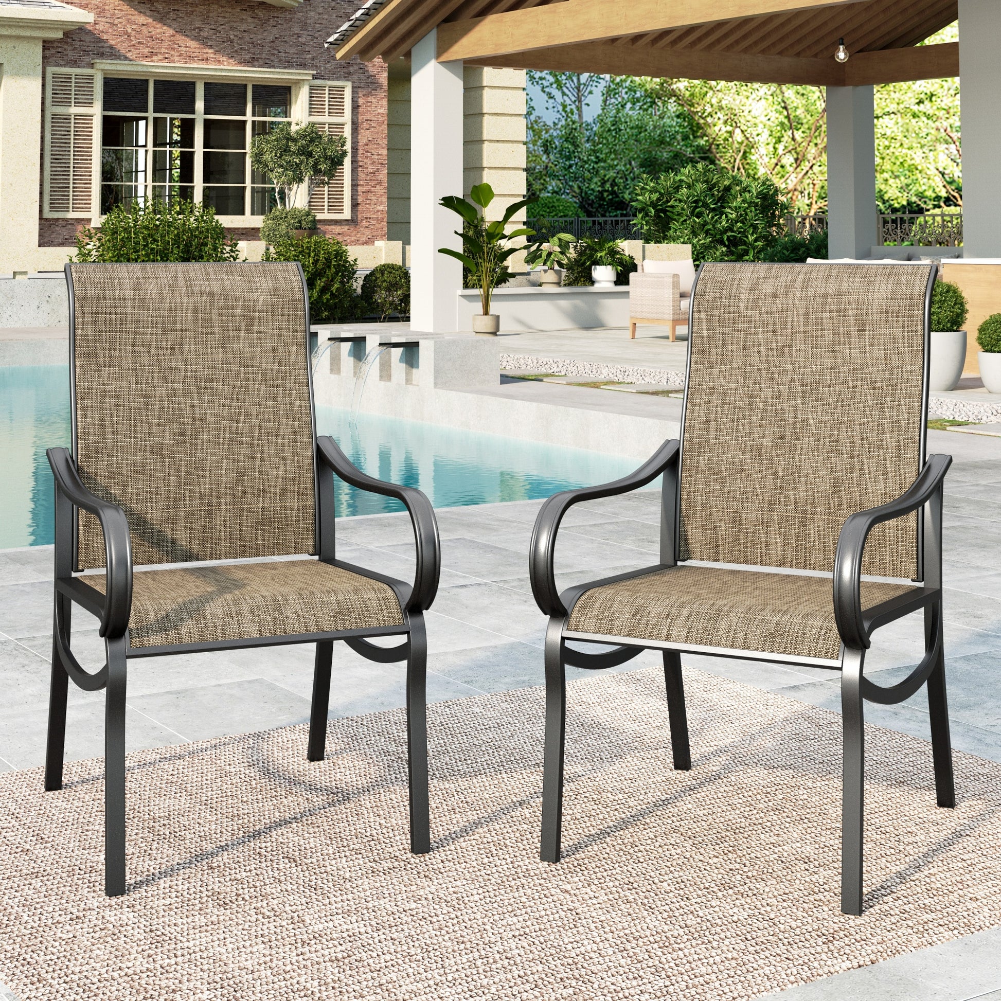 Summit Living Outdoor Patio Dining Chairs Set of 2, 2-Piece Textilene Patio Chairs, Black & Brown-gray